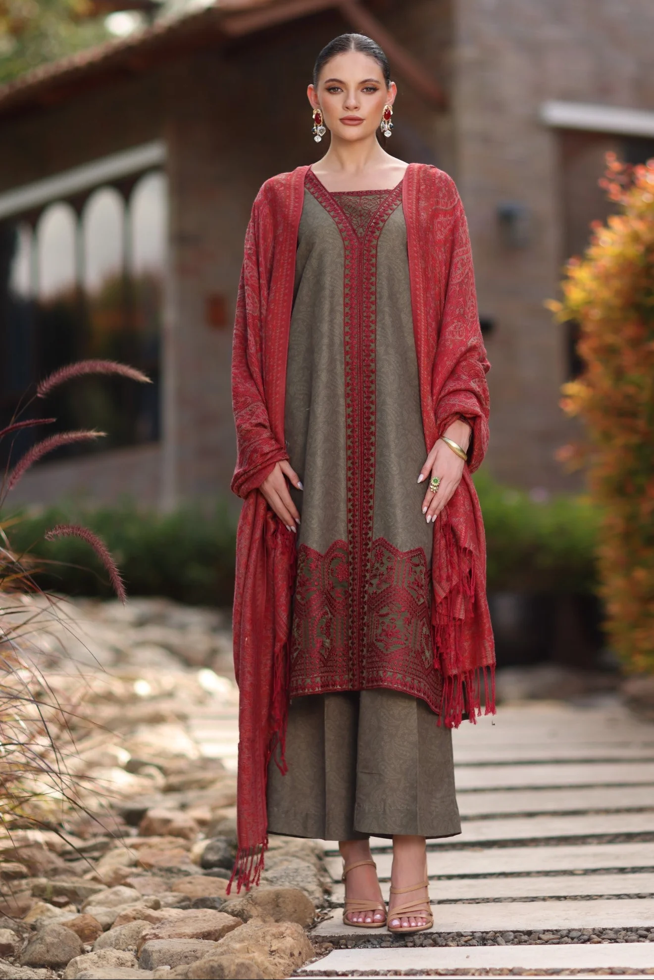 PRINTED BLENDED KHADDAR SLEEVES ORGANZA EMBROIDERED SLEEVES BORDER