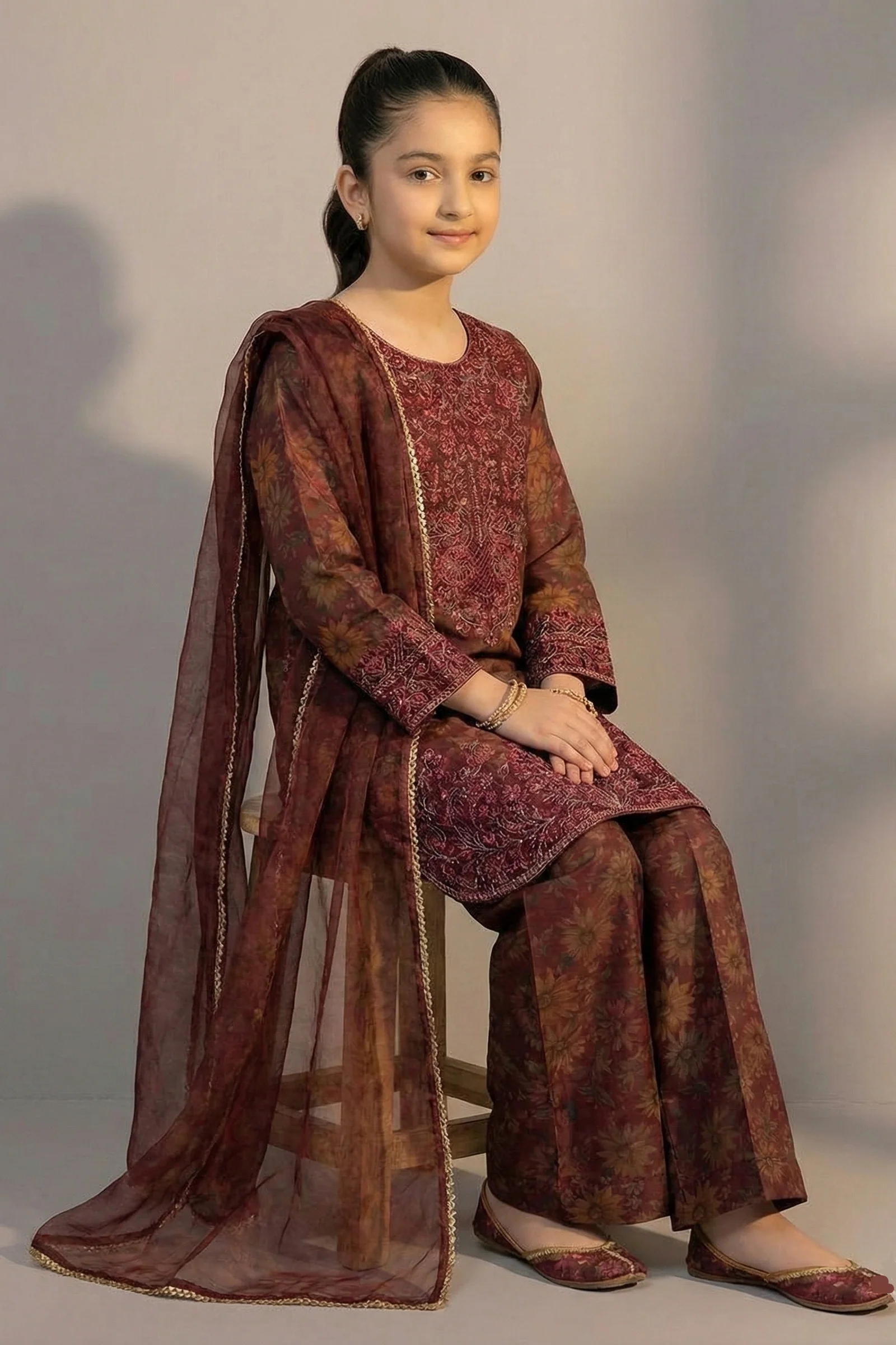 PRINTED EMBROIDERED POLY LAWN SHIRT