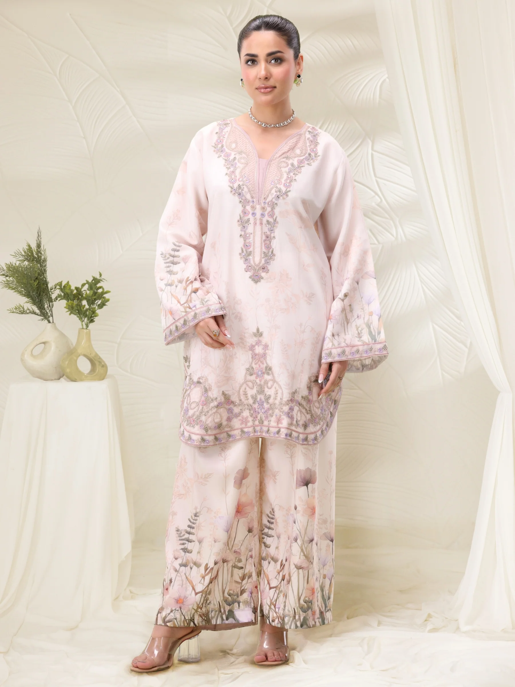 DIGITAL PRINTED SILK LAWN SHIRT WITH ORGANZA EMBROIDERED PATCH